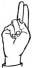 На ћирилици написано ДИНА РУЧНОВ састоји се из 10 слова [?]. Исписано ћириличном једноручном азбуком за глувонеме: